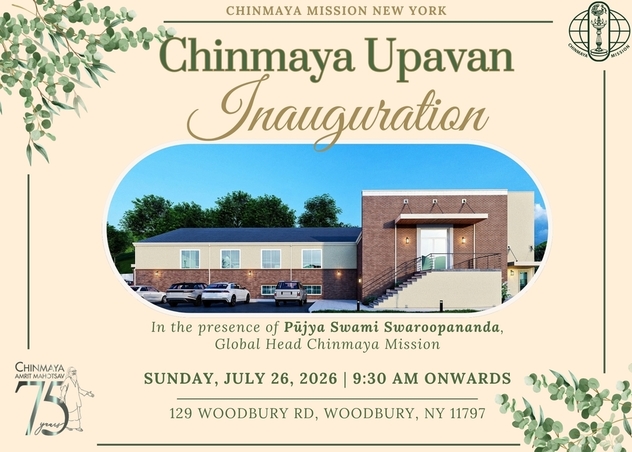 Chinmaya Mission New York cordially invites you and your family to the inauguration of our new home, Chinmaya Upavan. Please join us for this special celebration with Pujya Swami Swaroopananda and all the dedicated sevaks who have made this dream a reality.